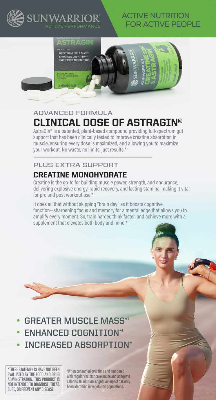 Astragin is a patented, plant-based compound providing full-spectrum gut support that has been clinically tested to improve creatine absorption in muscle, ensuring every dose is maximized, and allowing you to maximize your workout. No waste, no limits, just results.
