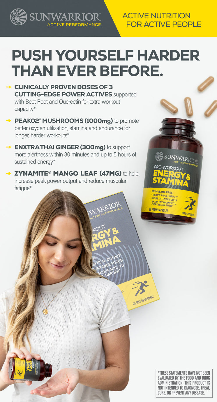 Yes, Pre-workout supplements are designed specifically to give you an energy boost before you exercise. Clinically studied Active Pre-Workout Energy & Stamina also includes plant-based ingredients like PeakO2 mushrooms, ENXTRA, Zynamite, and Thai ginger, which promote energy, endurance, and better oxygen utilization without the crash.