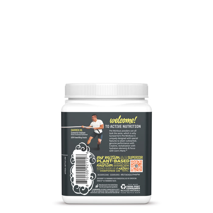Boost your game with Active Pre-Workout: the clean, vegan solution to epic gains. This science-based, nature driven formula lets you achieve the optimal. And we get it, Pre-Workout powders can all look the same, which is why Sunwarrior’s Pre-Workout is uniquely designed with special features to attain substantial, genuine performance with Creatine, revitalization with Hydration elements, and focus with Lion’s Mane. Formulated for committed athletes and bodybuilders on the quest for pump, hydration and the focus to harness their potential and crush their workouts! Active Pre-Workout lets you expect more from the time you spend in the gym.