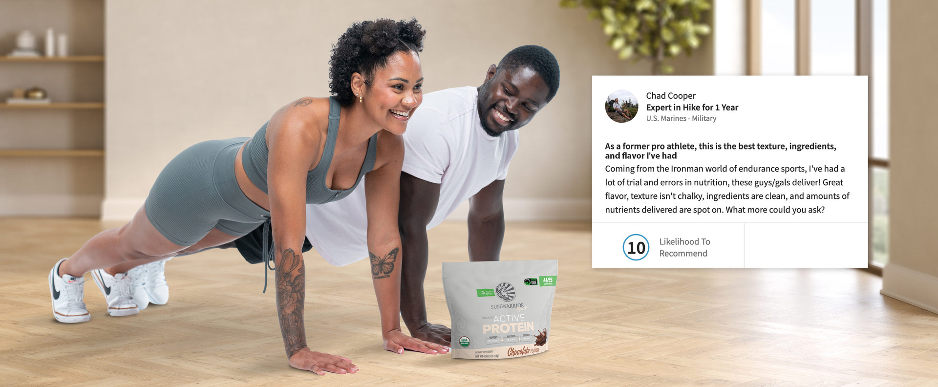Active Protein implements several known muscle recovery ingredients: Tart cherry, maca, Turmeric, and Black pepper