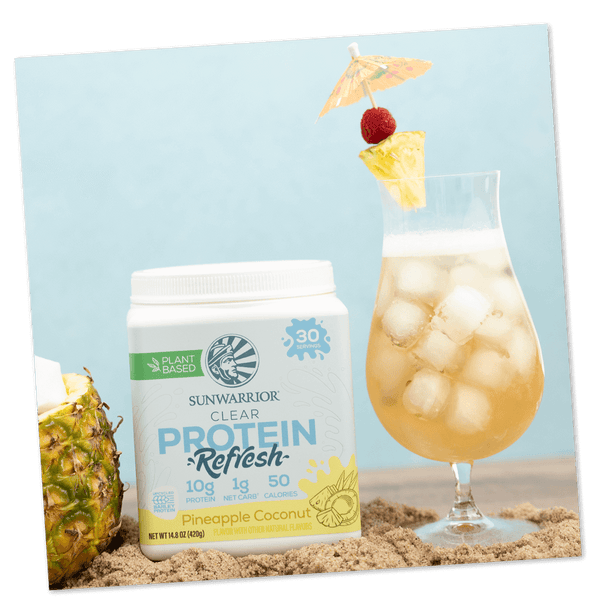 Sunwarrior’s Clear Protein Refresh is light, hydrating and completely refreshing. This entirely soluble formula is meant to be taken with water. The light pineapple flavor is not chalky or gritty.