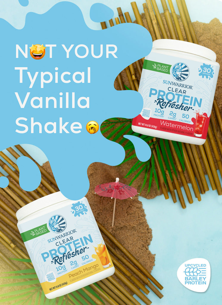 Just so we’re clear, let’s talk about what clear means in this particular instance. Sunwarrior’s CLEAR Protein isn’t called clear because of its color; our protein drink mix is clear in reference to its texture. For those who don’t necessarily love the creamy or thick milkshake texture of traditional whey protein, CLEAR Protein is made from much finer powder, resulting in a light, refreshing liquid. The delicious flavoring will shade the color as CLEAR Protein Refresh delivers a healthy, thirst-satisfying punch of 10g of protein. Using upcycled barley is a conscious departure from the creamy texture of traditional whey protein shakes.