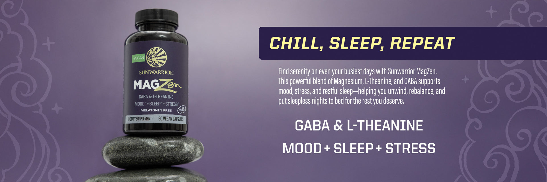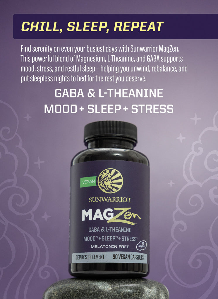 Find serenity on even your busiest days with Sunwarrior MagZen. This powerful blend of clinically studied Magnesium, L-Theanine, and Gaba supports mood, stress, and restful sleep—helping you unwind, rebalance, and put sleepless nights to bed for the rest you deserve.