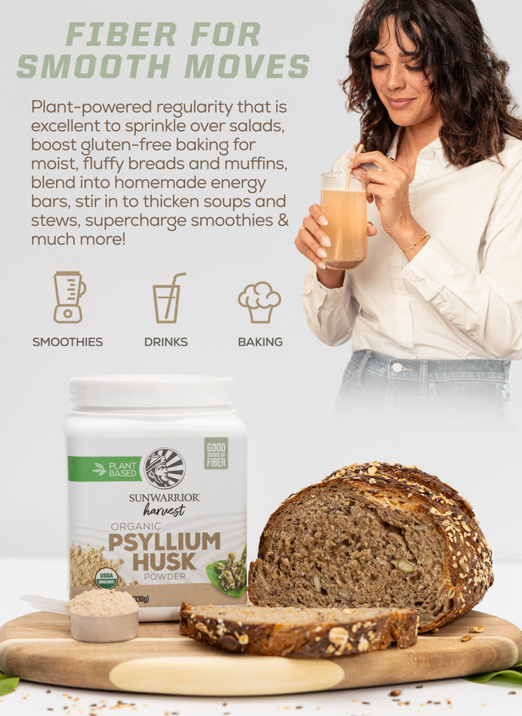 Organic Psyllium Husk: Plant-powered regularity that is excellent to sprinkle over salads, boost gluten-free baking for moist, fluffy breads and muffins, blend into homemade energy bars, stir in to thicken soups and stews, supercharge smoothies & much more!