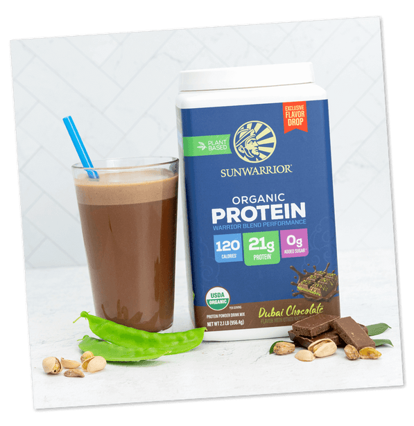 Organic Protein Warrior Blend Performance uses a clean mix of organic pea protein, organic fava bean protein, and organic mung bean protein synergistically working to provide amino acids and BCAAs for strength, recovery, and energy.