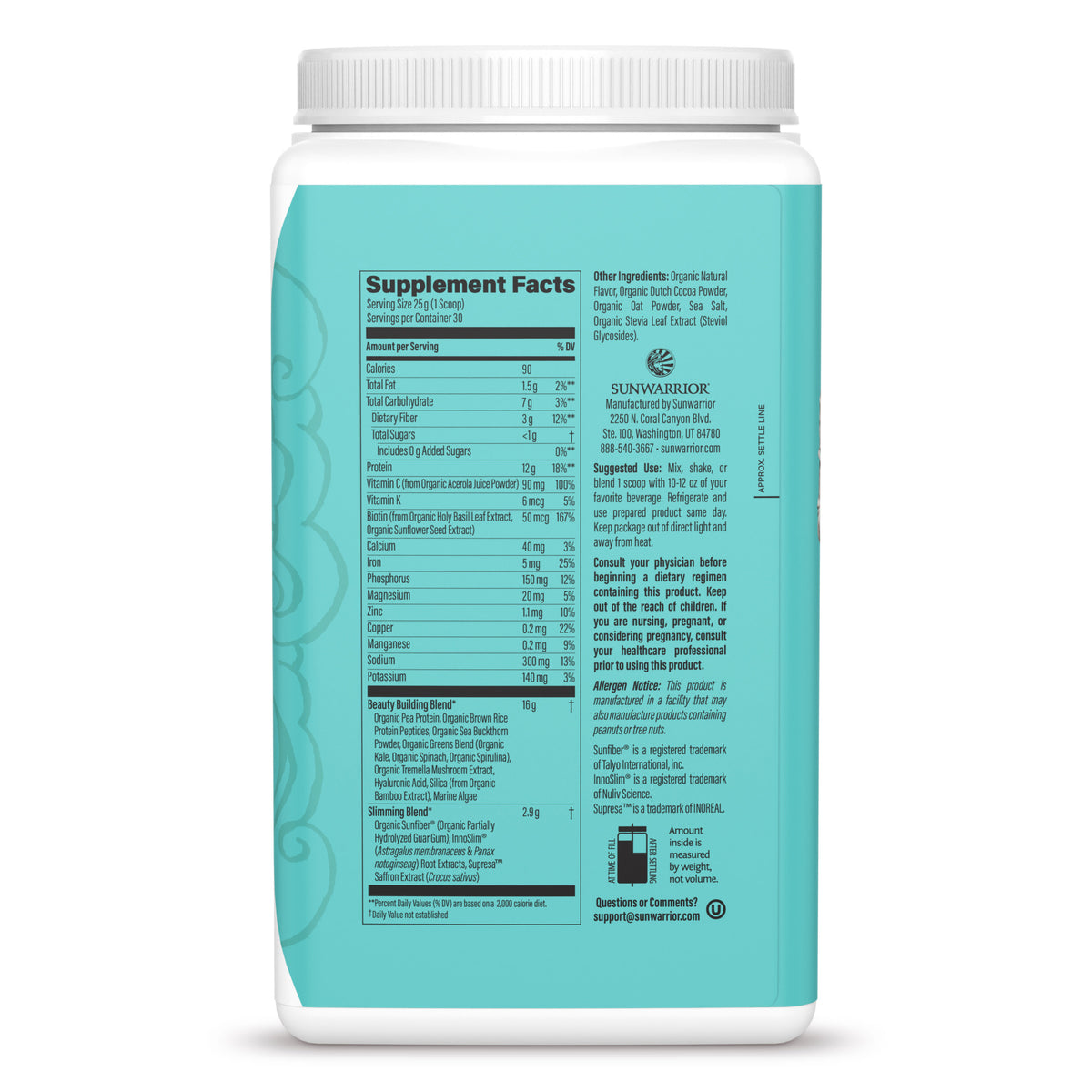Our Beauty Building Blend consists of several incredible organic ingredients: pea protein, brown rice protein peptides, sea buckthorn, kale, spinach, spirulina tremella mushroom, and bamboo extract and we’ve topped them with beauty complements hyaluronic acid and marine algae! Our powerful Slimming Blend is from organic potent ingredients Sunfiber, Innoslim, root extracts, Supersa, and saffron.