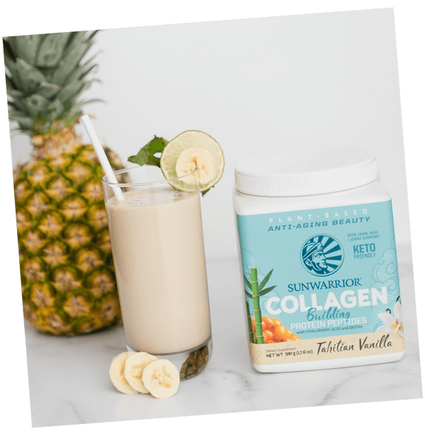 Collagen production in the body decreases as we get older, usually because we are not providing our bodies with those amino acids and nutrients necessary to keep collagen in rich supply. Because of the decrease that people experience in collagen, Collagen products are everywhere in the market. But why would you want to ingest an animal’s collagen when your body was made to make its own? Here’s the thing, eating collagen doesn’t build collagen, and your body cannot absorb collagen. But you can help your body make its own by eating a diet that is rich in those key amino acids and nutrients that are essential to your body producing its own collagen. Plant-based amino acids are converted efficiently into collagen and elastin. Sunwarrior's Collagen Builder provides all the amino acids and nutrients that a body needs to naturally make that conversion.  Collagen is made primarily of three amino acids: proline, hydroxyproline, and glycine, which gives it unique functional properties different from all other proteins. This also makes it the most important structural protein in the body.