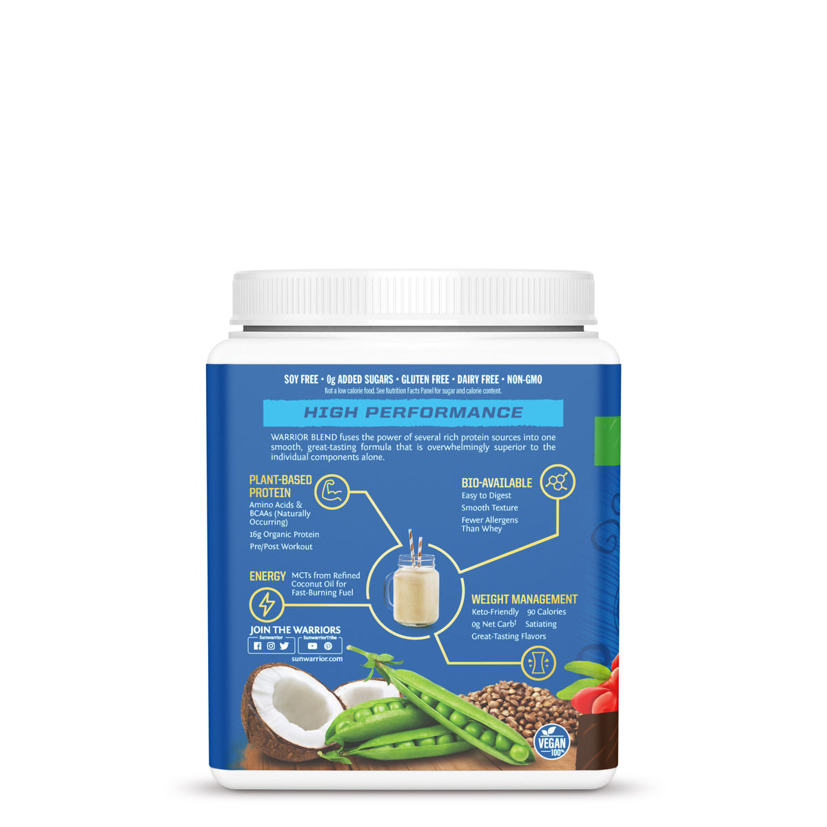 Sunwarrior's Warrior Blend Protein Powder is a top-quality plant-based protein supplement designed to fuel the body with clean and sustainable protein. The great-tasting formula boasts a powerful blend of organic pea protein, hemp protein, and goji berry powder, providing a well-rounded supplement to support muscle recovery and growth. Medium-chain triglycerides from coconut work synergistically with the other ingredients to create a unique vegan protein exceptionally rich in amino acids and BCAAs.
