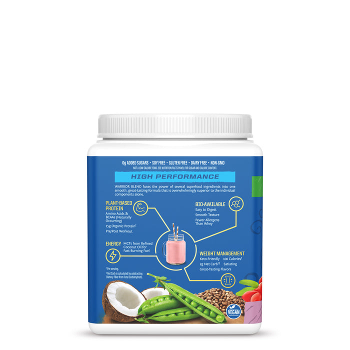 Warrior Blend combines the power of organic pea, hemp, and goji proteins into a smooth, delicious powder. It’s naturally rich in BCAAs, supports muscle recovery, and is free from dairy, soy, and gluten. Berry Shortcake flavor makes every shake enjoyable, whether post-workout or part of your daily nutrition.